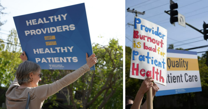 On Saturday, April 22, members of the Union of American Physicians and Dentists and Service Employees International Union-United Healthcare Workers West (SEIU-UHW) protested in solidarity against staffing shortages at LifeLong Medical Care’s annual gala at the Claremont Club and Spa in Berkeley. Hundreds of healthcare workers, medical professionals, and community allies filled the streets with signs and chanted slogans as they marched outside to raise awareness of workplace concerns.